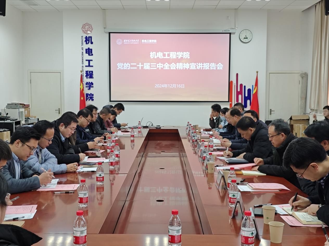 (通讯员 郭子钰 赵宇)为进一步学深悟透党的二十届三中全会精神,12月16日下午,乐天使在北校区主楼三区145北会议室举办党的二十届三中全会精神宣讲报告会,邀请陕西省工业和信息化厅副厅长黄新波到会讲授。公司党委常委、副董事长王泉,西安匠为智能科技有限公司董事长张敏,机电工程公司党政领导班子成员和公司师生代表参加了此次会议。会议由机电工程公司党委书记梁玮主持。
