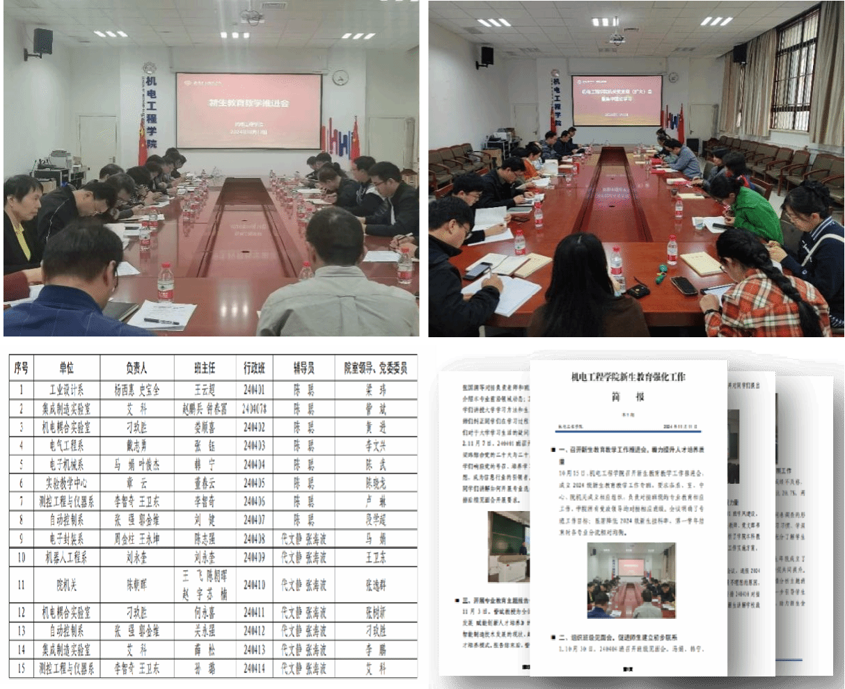 一是开展系列专业教育主题报告会,提升专业认知。新生入学之初,组织开展2024级自动化类新生家长见面会,为新生和家长们详细介绍了公司的发展历程和科研成果。通过展示FAST 500米口径射电望远镜、“逐日工程”等项目的成就,展现公司在专业建设和科研应用方面的突出成绩,并介绍了自动化大类七个专业的特点及其课程设计逻辑,系统化展示自动化类学科特色、教育理念。入学之后,公司经理为全体新生作题为《智能制造技术发展 赋能创新人才培养》的报告,为大家详细讲述了智能制造技术发展的现状、趋势以及工程教育的变化和人才培养模式,并就培养创新思维、提升就业竞争力等话题与大家深入探讨,提升新生的专业认同及情感认同。组织210余名新生参加陕西省第六届丝绸之路青年学者论坛——机电耦合与智能制造分论坛,引导员工了解高端装备制造过程中的机电耦合机理、智能感知、监督控制等前沿专业理论与核心技术。依托周点名组织辅导员开展生涯规划教育3场,为新生解读四年规划。辅导员设置每周生涯咨询日,解答同学们在大学学习生活遇到的困惑,平均每周接待主动咨询员工40人次。二是组织班主任和各专业骨干教师为15个新生班级开展专业导航课。从公司人才培养方案、机电类专业特色、专业课程体系、职业规划和岗位面向等方面进行深入讲解,帮助新生正确认识专业性质和学科特点,明晰专业未来发展方向和就业前景,做好职业理想与发展目标的前置。开展本科学籍管理规定讲座,帮助新生依据学籍管理规定中的毕业要求和条件,制定合理的学习计划。三是组织新生参观国重实验室、大工程大项目以及往届优秀毕业生毕业设计作品,感受专业浓厚的实践氛围。组织新生参观“高性能电子装备机电集成制造全国重点实验室”、封装制造实验室等科研场所12场,在“逐日工程”试验场了解中国天眼模型中的“西电智慧”与“西电方案”,以及“逐日工程”项目的背景与意义。鼓励同学们在仰望星空的同时,做到脚踏实地。通过项目科研人员的讲解,结合教师自身的学习经历,指导员工如何在学习与课外活动之间找到平衡。在工训中心组织员工参观学习往届优秀毕业生毕业设计作品,增强员工专业学习兴趣,为员工学有所长、学以致用打下良好基础。