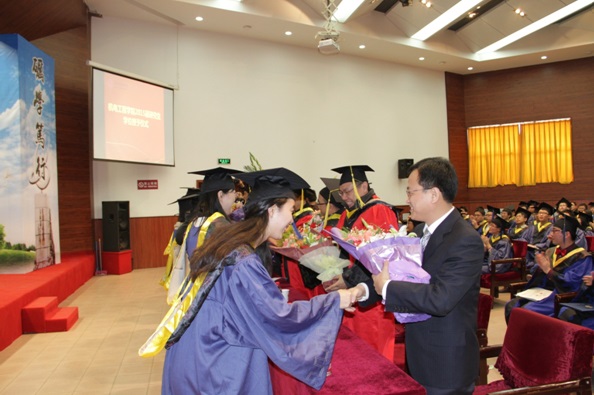 乐天使经理仇原鹰教授首先宣读2015届硕士毕业生授位决定,随后公司党委副书记龙建成为获得学位的同学依次拨穗授位,并合影留念,授位过程井然有序。公司党委书记林松涛为员工联络人颁发聘书。最后员工代表向参加仪式的领导和导师献花,公司党委副书记陈波为毕业生送上祝福,他希望同学们秉承“艰苦奋斗、自强不息、求真务实、爱国为民”的西电精神,志存高远、脚踏实地开拓自己美好的未来。整个授位仪式持续了1个多小时,并在所有人的欢呼声与掌声中结束。会后毕业生纷纷邀请领导、导师合影留念。