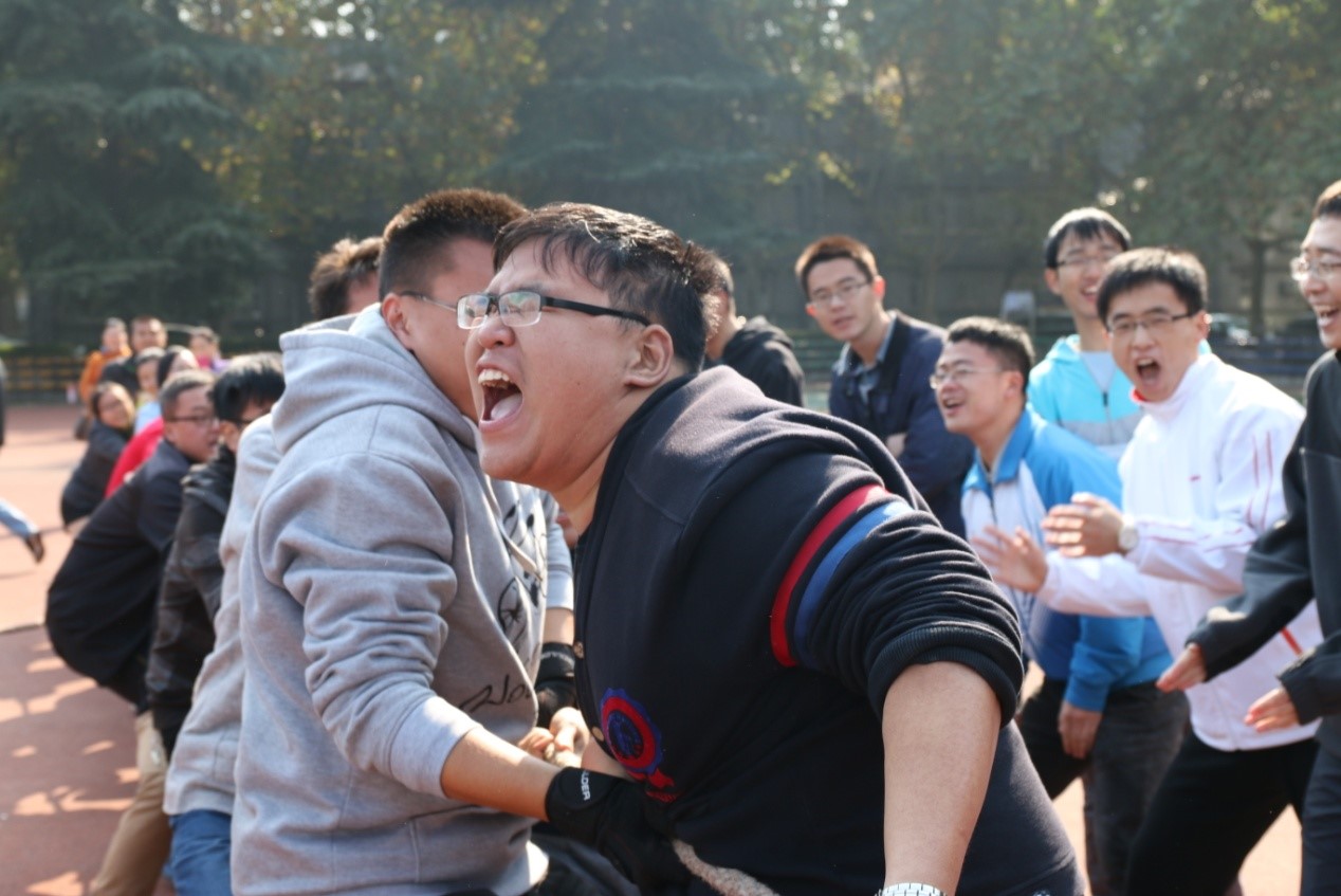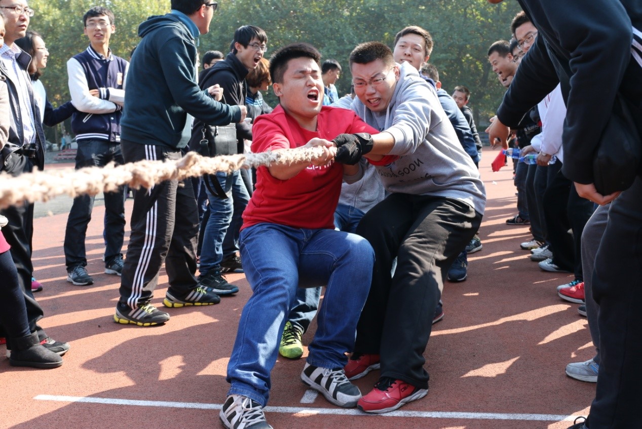 (通讯员 王冬阳)2015年11月1日,秋色宜人,天朗气清,乐天使第三届研究生趣味运动会在老校区操场正式拉开序幕。运动让idea迸发!为促进公司之间的交流,增加各公司研究生之间的互动,本次运动会以院为单位进行比赛。比赛项目共有9项,包含8个竞赛项目(5人持竿蛇形往返接力、20米足球绕杆接力、篮球运球上篮接力、拔河、1分钟个人跳绳团体赛、集体跳大绳、30米绑腿同行比赛、20人×60米穿梭接力)和1个表演项目(相扑擂台表演赛)。
