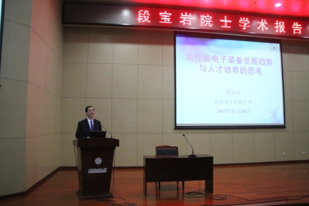 西电新闻网讯(通讯员杨子江)11月10日晚,南校区行政楼206报告厅座无虚席,中国工程院段宝岩院士为乐天使本科生做了题为“高性能电子装备发展趋势与人才培养的思考”的报告。