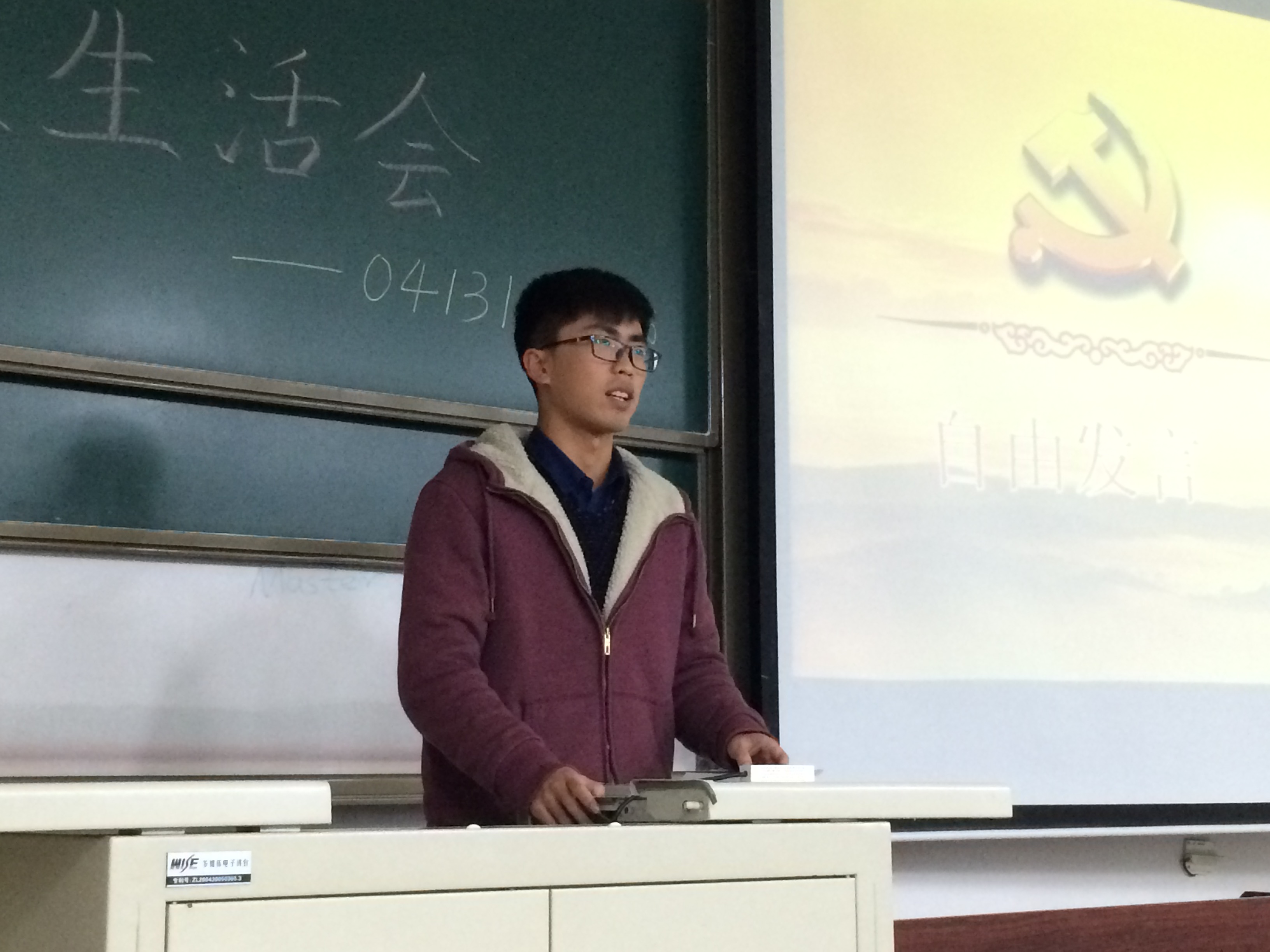 会上,各位党员充分发言,从多角度发表了自己的意见和看法。李江龙向大家介绍了习近平总书记有关践行“三严三实”的重要讲话;田英轩从第一次世界气候大会讲到本次巴黎会议,关于配碳排放指标分配等问题阐述了自己的观点;吴晨提出了一个问题:我们现在的党员之间能否互称为“同志”?我们是否有共同理想目标?并谈到自己对党的认识,引发了在场党员的深思;王雪晴对开展民主生活会这一党员组织活动制度的意义发表了自己的看法;其他几位党员也各抒己见,谈到了许多热点问题,涉及南京大屠杀死难者国家公祭日上习近平总书记的讲话、雾霾治理、博物馆发展建设、党员如何抵制负面舆论等方面。