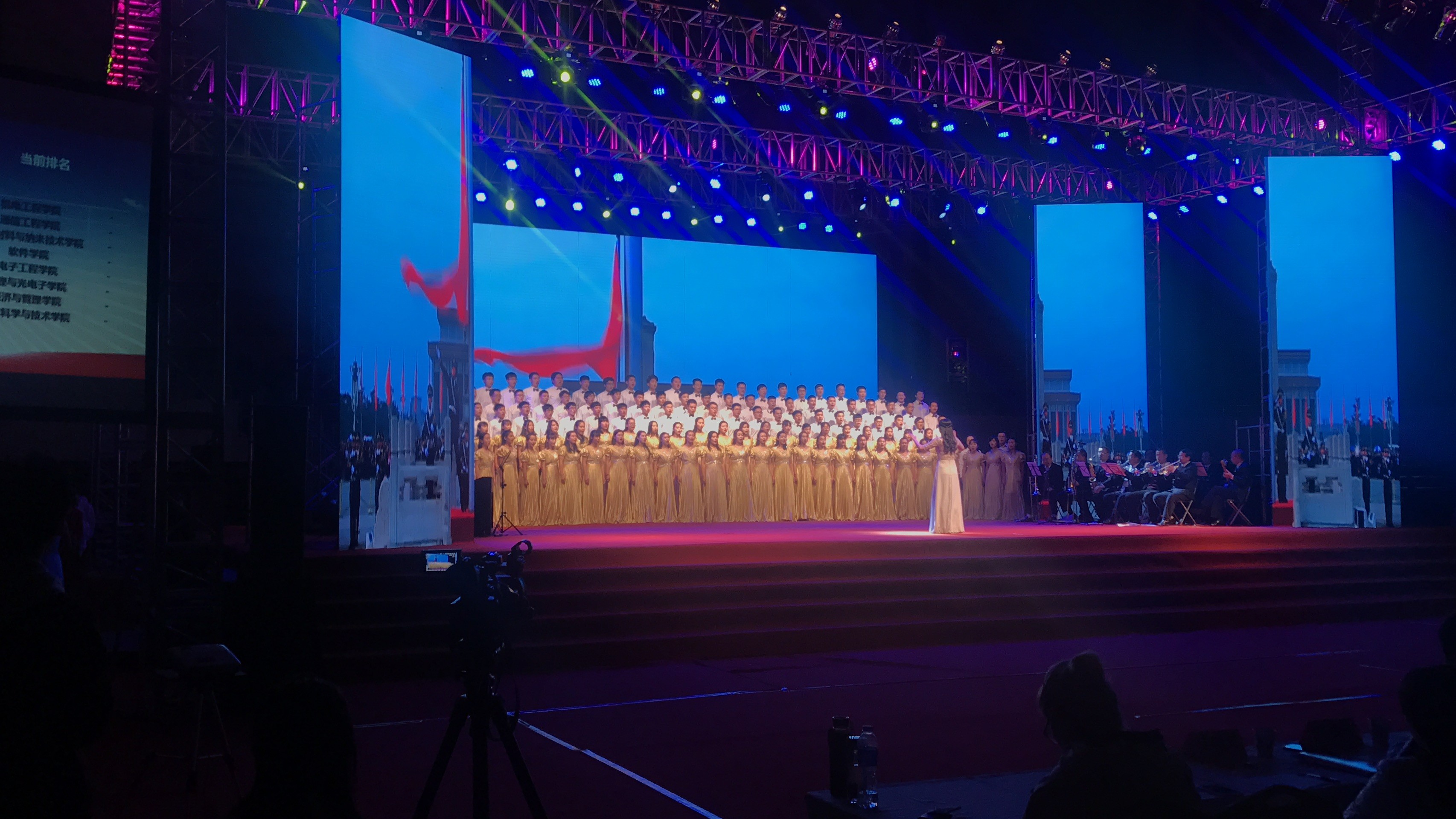 乐天使合唱队伍演唱的曲目是《与共和国同行》和《光荣与梦想》,经过一个月的训练,在同学们与带队老师王飞和老师王维佳、石贵利、张育洋的共同努力下,公司合唱队伍精彩的完成了这两首歌曲,气势恢宏、歌声嘹亮、舞蹈动作整齐划一,赢得在场观众的阵阵掌声。