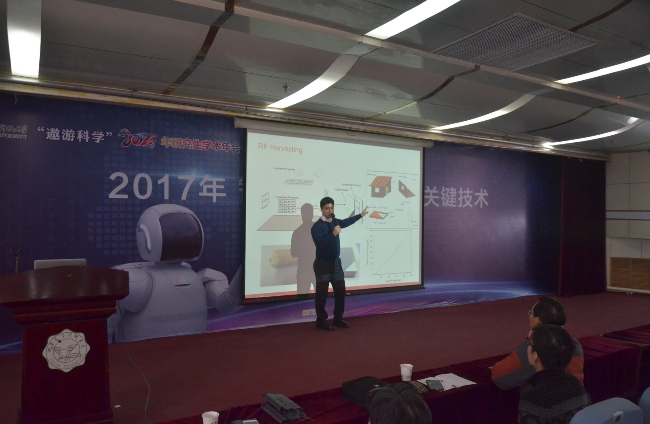 应乐天使电子装备结构设计教育部重实验室主任黄进教授、宋立伟副教授邀请,澳大利亚皇家墨尔本大学(RMIT University)Kamran Ghobani教授来校开展合作研究。12月15日上午Kamran Ghobani教授在北校区图书馆西裙楼报告厅作了题为“Multifunctional Smart Skin Structure”的学术报告,主要介绍了他在共形承载天线结构、环境电磁能量收集、液态金属散热系统、电磁涡旋设计方面的主要研究成果,并与乐天使师生就相关问题展开讨论。报告由电子装备结构设计教育部重实验室主任黄进教授主持。Kamran教授的报告内容引起在场师生的浓厚兴趣并踊跃提问,教授对问题一一作出详细的解答。