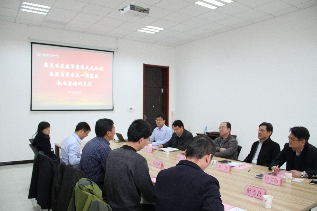 (通讯员:王永坤)2019年3月7日上午,中国振华集团电子集团风光电子有限公司张国荣董事长一行与乐天使产学研交流座谈会议在北校区主楼三区143南会议室举行。中国振华电子集团风光有限公司董事长张国荣、科技副总经理胡锐,人力资源部部长徐良红与公司就产学研合作、人才培养、在职员工培训等多方面进行商谈交流。乐天使机电工程公司党委书记梁玮,乐天使经理黄进,乐天使副经理陈武、乐天使经理助理王永坤、乐天使电子封装系主任田文超及骨干教师参加会议。本次交流座谈会由陈武主持。