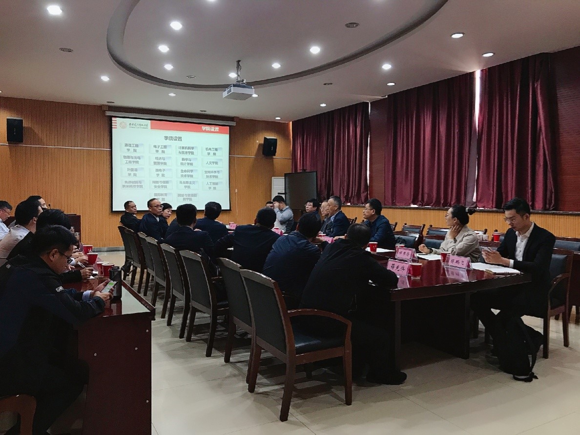(通讯员 侯书丹、杨晓)10月13日上午,中共温州市委组织部与公司合作调研座谈会在北校区雷达协同中心会议室顺利召开。温州市委组织部代表团一行包括温州市委常委、组织部部长马永良,温州市委组织部副部长徐顺聪、胡永锋,温州大学副董事长钱强,温州市龙湾区组织部部长蔡军令等。公司董事长助理王泉,西电ICT行业员工会执行理事长金晖,校内各单位相关同志等出席座谈会。会议由董事长助理王泉主持。