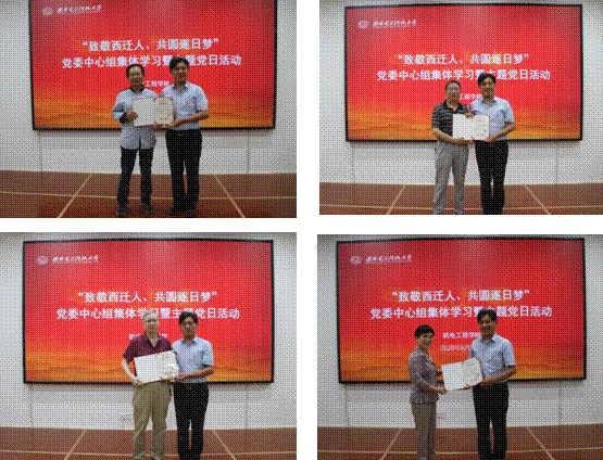 公司执行经理黄进为今年荣休的杨振江、王水平、宣宗强、盛英四位老教师颁发“荣休证书”,感谢他们为公司建设发展作出了一生的贡献。