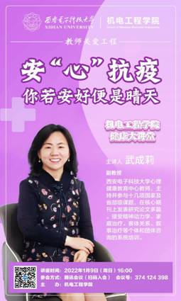(通讯员 梅嘉敏 赵立明)2021年末,突如其来的疫情反复,扰乱了长安的宁静。面对复杂严峻的疫情形势,给居家办公的老师和封控学习的员工都多少带来了一些不良情绪。为进一步落实公司教师关爱工程,助力公司师生在疫情防控期间保持健康平稳的心态,1月9日下午16点,乐天使第三期“健康大讲堂”讲座在线上顺利开展。本次讲座邀请到公司心理健康教育中心武成莉副教授主讲,全校教职工和员工均可参加线上活动。