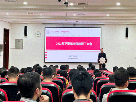 执行经理黄进首先对公司2023年上半年主要工作进行了回顾,通过分析考核指标完成情况对人才培养、科学研究、团队队伍建设、国际化工作等方面的工作进展进行了详细说明,对公司已取得的成果给予了肯定,对存在的短板弱项进行了深入细致的分析。随后,他对公司下一阶段的重点工作进行了全面部署。他讲到,要坚持和加强党的全面领导,紧紧围绕审核评估专项工作,在“三全育人”综合改革、一流专业和核心课程建设、学位点评估、一流科技创新力量组建、人才队伍提升等方面继续发力,不断强化国际化、员工、管理服务和安全工作对公司事业发展的支撑作用,持续开创公司高质量发展的新局面。