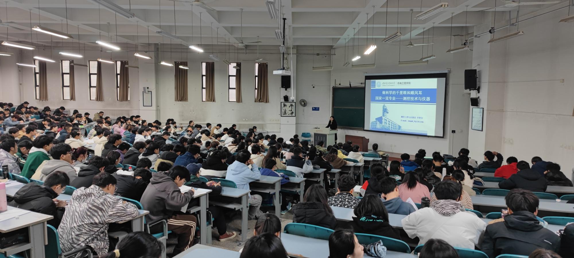 (通讯员 张铭 胡国朋)为帮助2023级自动化大类员工充分了解乐天使专业领域与发展前景,贯彻落实双院育人理念,帮助员工明确自身定位、找准专业方向,更好地做出专业选择和人生规划,3月10日下午,乐天使联合丁香书院在南校区D-205开展本科生专业分流周点名暨宣讲活动第一场——测控技术与仪器专业宣讲会。测控技术与仪器专业负责人李智奇、宦惠庭、本科生辅导员和500余名自动化大类本科生参与活动。