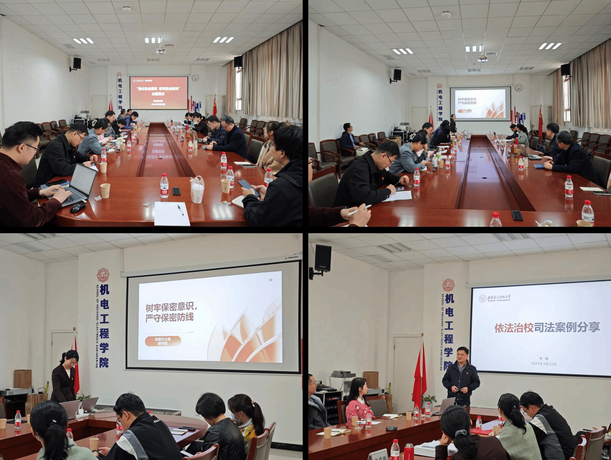 紧接着开展专题报告学习。科学研究院保密办公室主任颜学颖和科学研究院副经理兼保密办公室副主任、国家安全人民防线领导小组办公室副主任杨卫亚结合大量高校案例,通过法律条文解读,围绕如何做好高校保密工作进行了系统深入的讲解。保密工作是一项基础性、全局性、长期性工作,要充分认识做好保密工作的重要性,始终绷紧保密风险弦,强化组织领导,筑牢保密防线,全面落实保密工作责任制,强化全过程管理,加强网络平台、新媒体等互联网管理,严格把关,坚决做到“涉密不上网、上网不涉密”。法务办公室主任、国家安全人民防线领导小组办公室主任李明作了题为《依法治校司法案例分享》的专题报告,他结合工作实际,从多个角度、多个案例深入浅出地阐述了高校工作者增强法律意识和法治观念,开展依法治校工作的必要性。