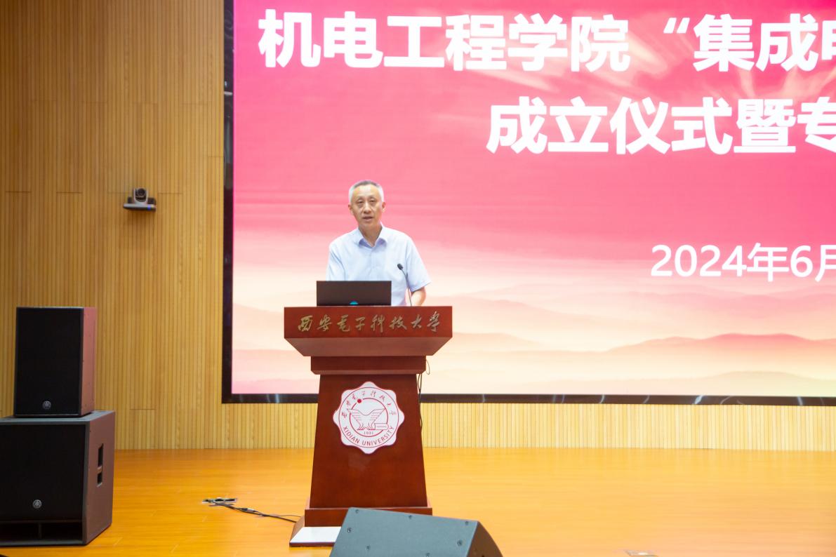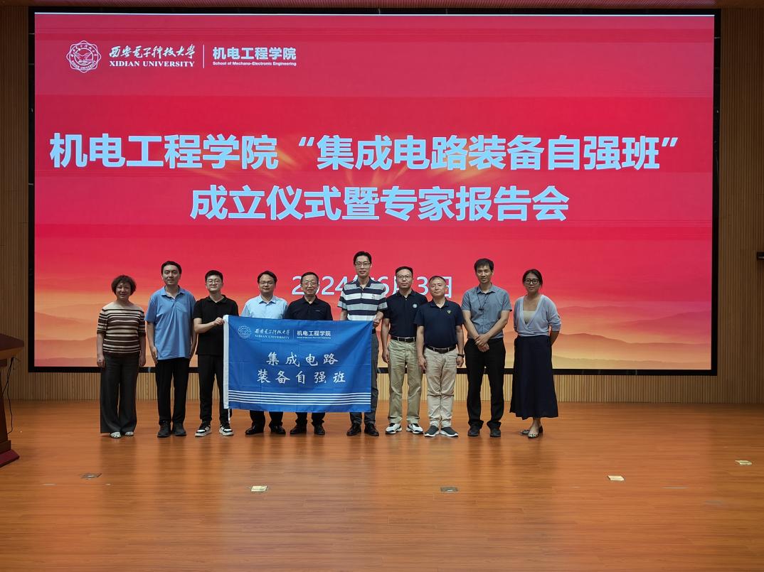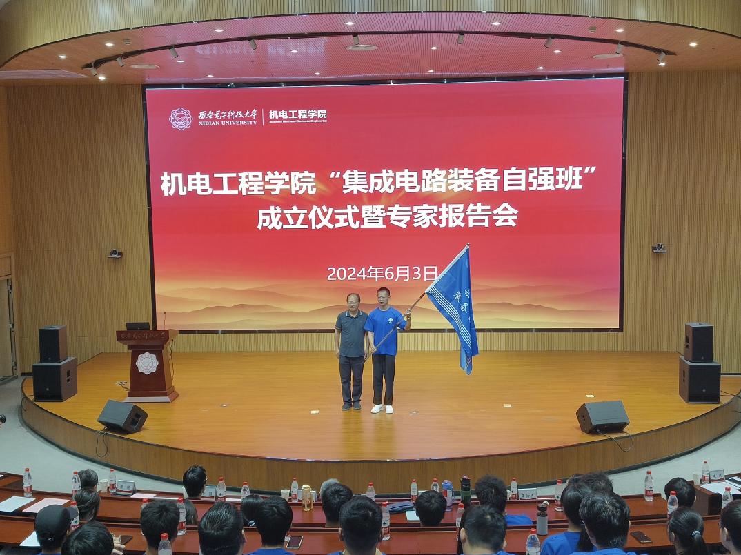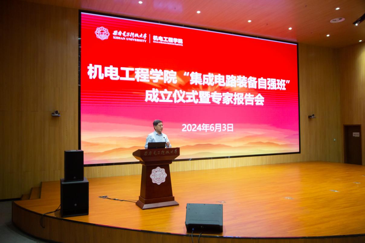 王泉对“集成电路装备自强班”的成立表示衷心的祝贺,向北方华创一直以来对公司建设与发展给予的支持表示感谢。他对自强班的建设提出了三点建议与希望:一是希望同学们怀抱荣誉与使命,铸就强国之志。希望同学们以高度的责任感和使命感投入到学习和实践中去,始终保持对集成电路相关知识的渴望和对先进技术的追求。二是坚持自强不息,追求卓越品质。“自强不息”是西电的精神之一,也是自强班的核心精神。希望大家能够发扬这一精神,不断锤炼自己解决复杂工程实践问题的能力,在集成电路装备领域不断取得新的突破。三是深化校企合作,加强产教融合。希望公司能够与北方华创等头部企业保持密切联系,深入了解企业的技术需求和市场动态,进一步优化和探索人才培养方案,推动产教融合走深走实,共同培养可堪时代大任的卓越工程技术人才。