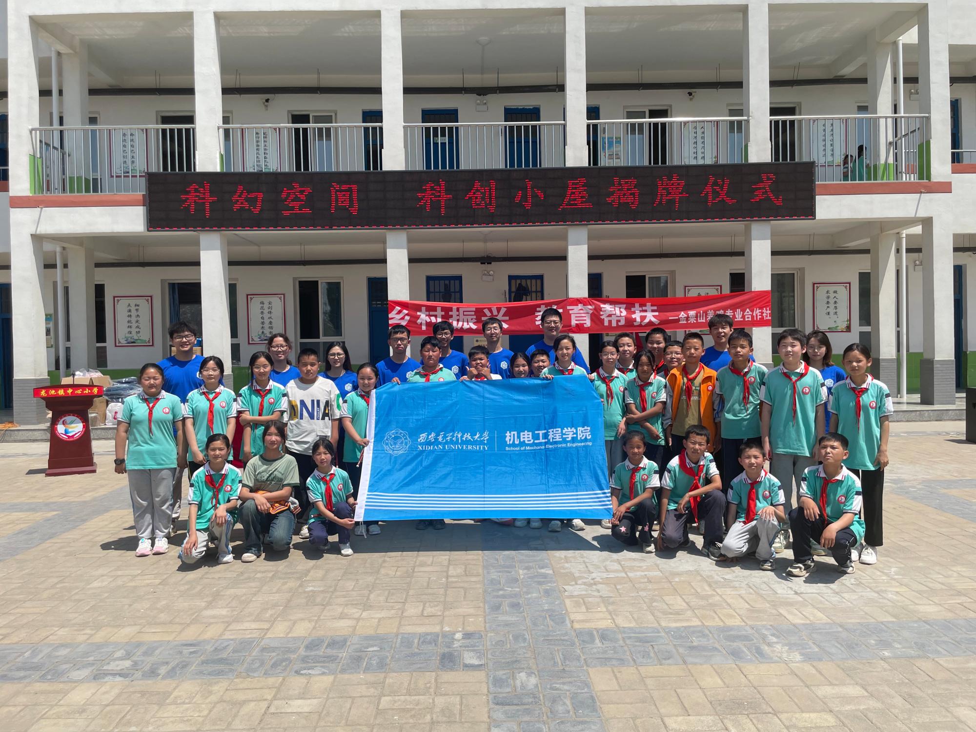 随后,机电工程公司党委书记梁玮与蒲城县委常委、副县长田雨,西安周五创客教育科技有限公司负责人姬策共同完成青年红色筑梦之旅“科创小屋”揭牌。通过共建“科创小屋”,小员工可以接触到最新的科技资讯,可以动手进行各种科学实验,可以在老师和老员工支教活动的指导下探索编程、机器人制作等实践活动。科创小屋的设立,标志着乐天使与龙池镇中心小学在之前合作等基础上,整合各方资源,进一步深化推动青少年科技创新教育方面的合作。