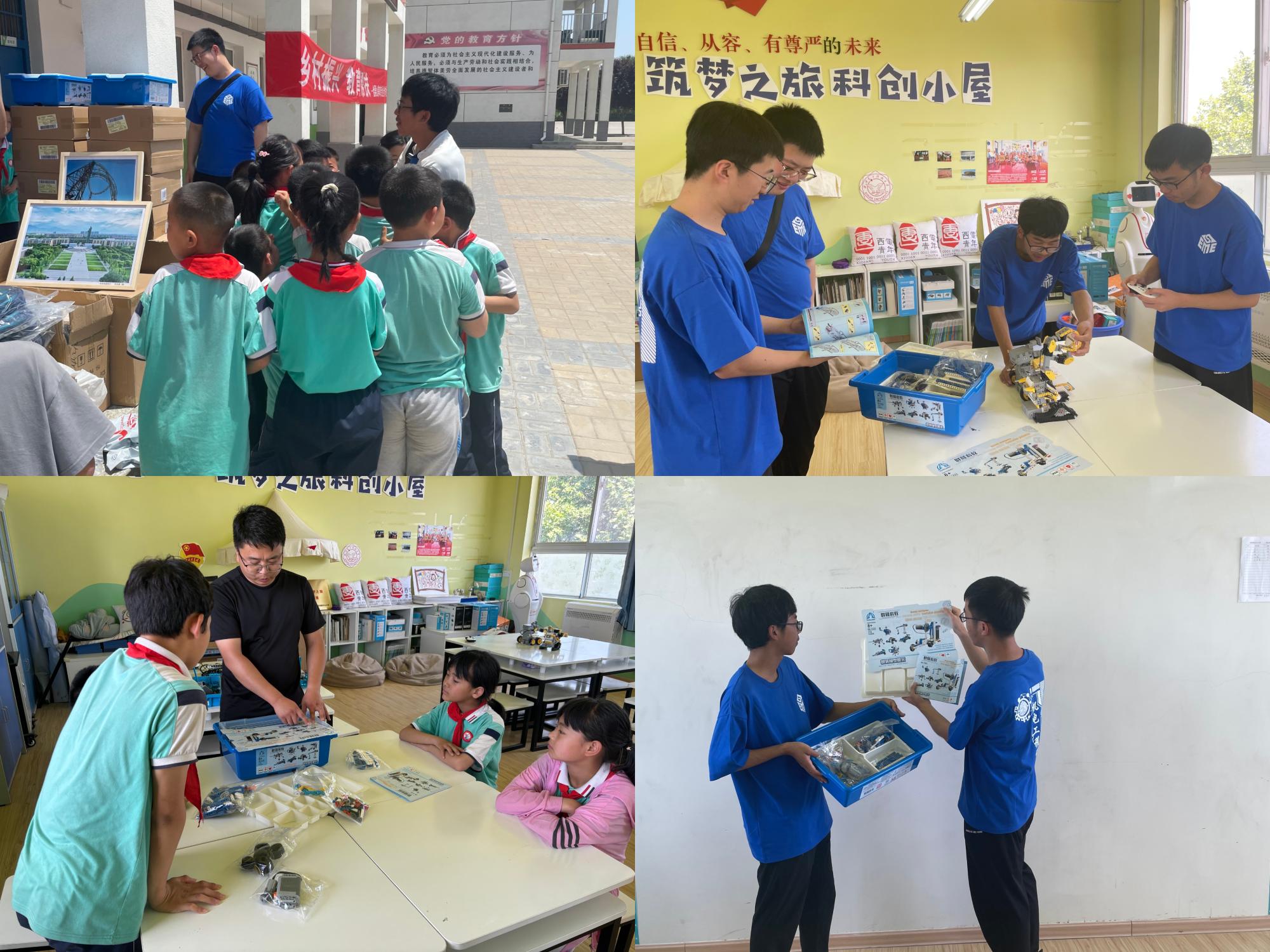 入队仪式结束后,通过老员工带来的机器人编程教具,在“科创小屋”里给同学们带来了一堂科普课堂,精彩的课堂不仅锻炼了同学们的动手能力,交流也点燃了同学们的科学梦。同时,乐天使向龙池镇中心小学带来了近三年乐天使教工摄影获奖作品中校园风光的摄影作品。通过此次展示,向小员工们详细介绍了西电的校史及校园风景,增进了两所公司员工间的交流。摄影作品不仅更加深刻地体现了教育帮扶的意义,也让同学们感受到了知识改变命运的强大力量。