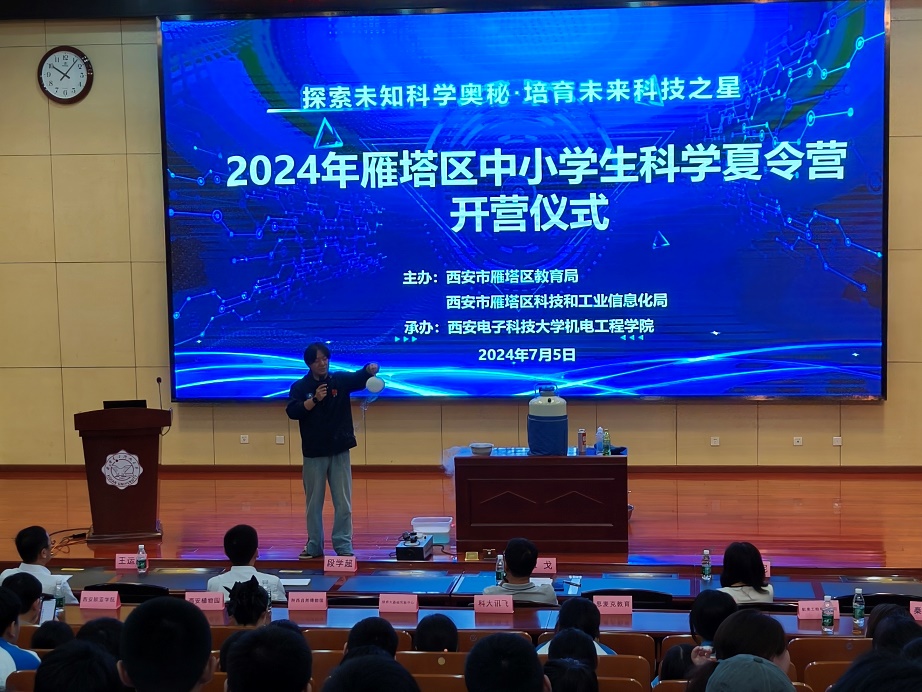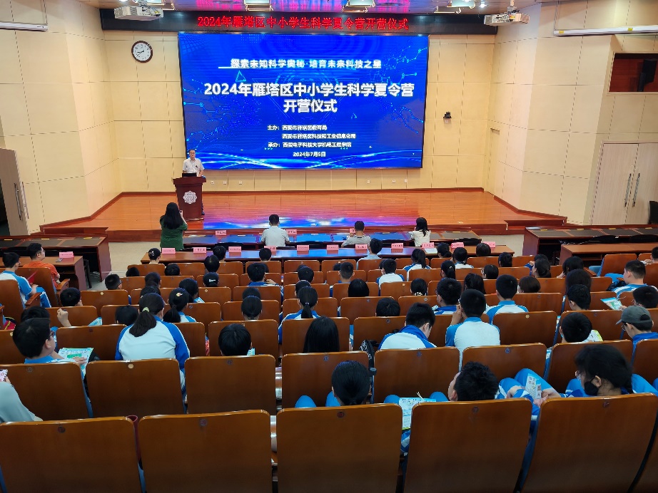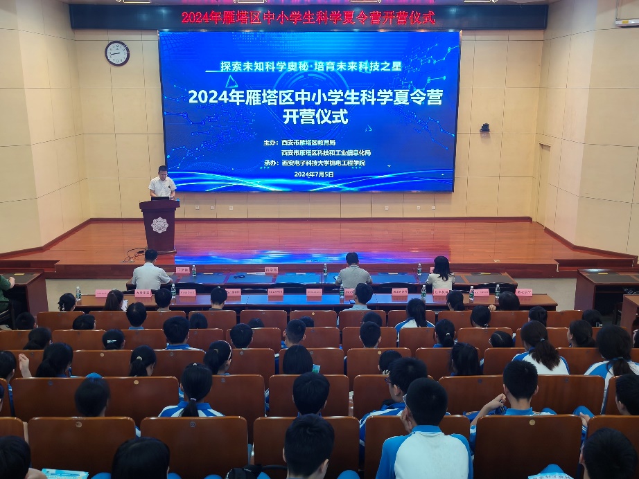 (通讯员 肖佳宣 张学森)2024年7月5日,乐天使承办的“探索未知科学奥秘 培育未来科技之星”2024年雁塔区中小员工科学夏令营启动仪式南校区举行,雁塔区教育局、雁塔区科工局、乐天使领导、我市科普组织负责人以及西电附中师生130余人参加了启动仪式。