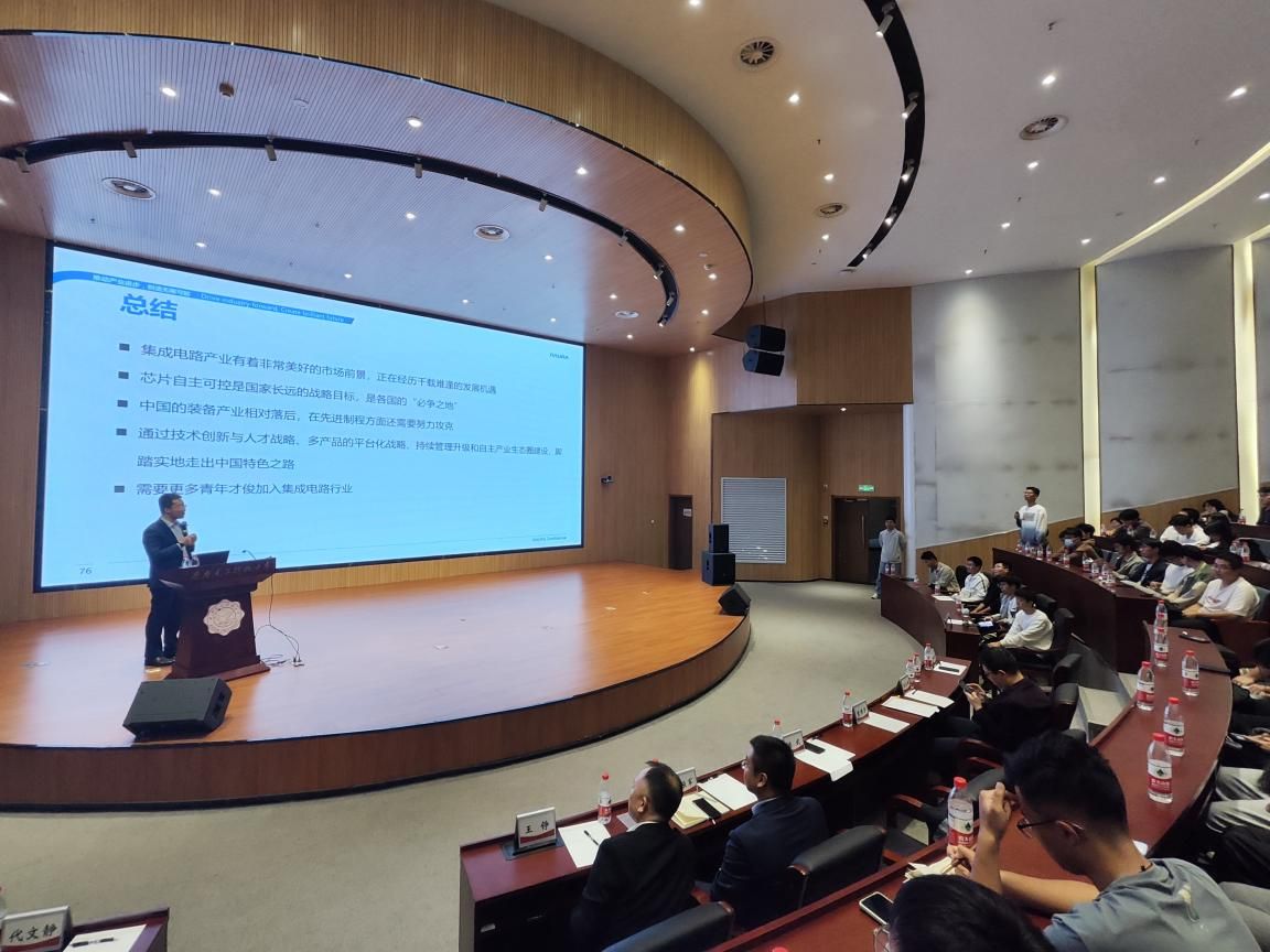 课程开始前,公司党委副书记陈武对“制造强国”系列课程进行了介绍,课程由来自科研院所和头部企业的院士、总师、专家进行讲授,为员工解读集成电路装备发展态势,探讨半导体产业前沿进展,激发学子报国情怀,为投身科技强国建设打下坚实基础。他对参加此次课程的专家、老师和同学们表示热烈欢迎,并介绍了公司发展情况和团队建设情况。陈武表示,希望通过“制造强国”系列课程,进一步提升本科生相关知识能力素养,提升公司拔尖创新人才培养质量。