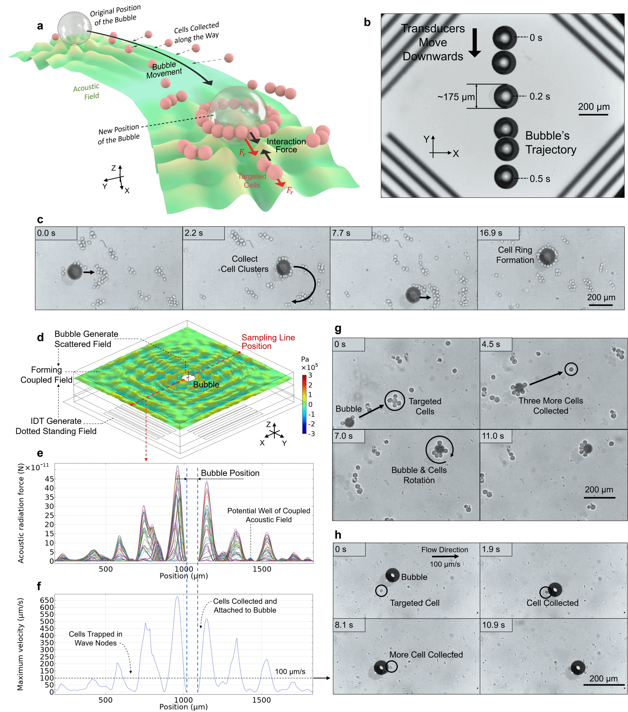 图2 通过微气泡对声表面波场的局部增强效应实现空间选择性癌细胞操纵