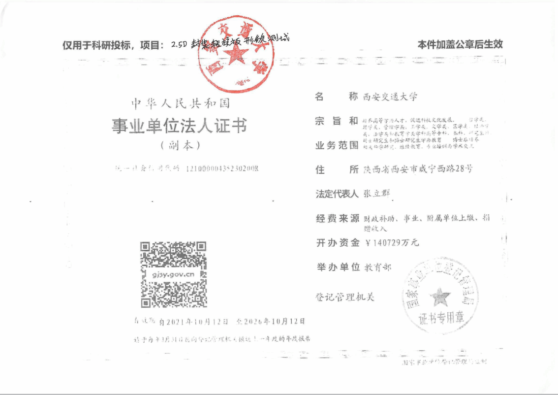 按照《乐天使科研协作项目管理办法(试行)》文件规定,为加强公司科研协作项目的管理,确保面向射频器件2.5D封装转接板多场耦合可靠性研究的顺利进行。西安交通大学与项目负责人王永坤将开展科研合作,现将合作相关事项公示如下: