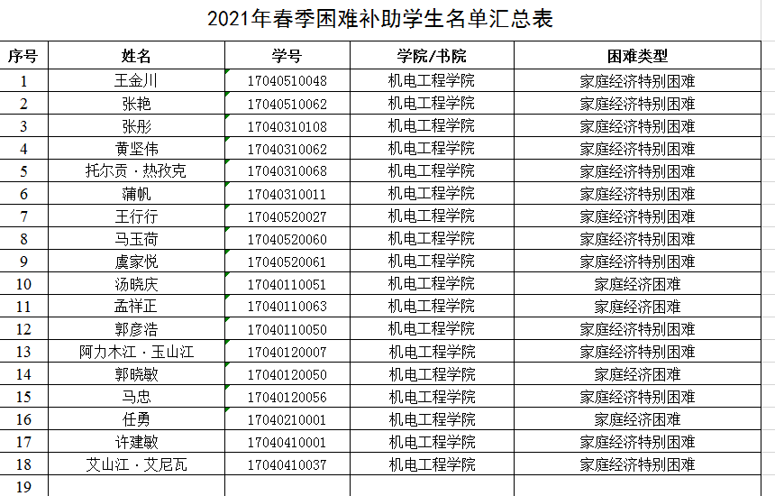 2021春季困难补助员工名单公示