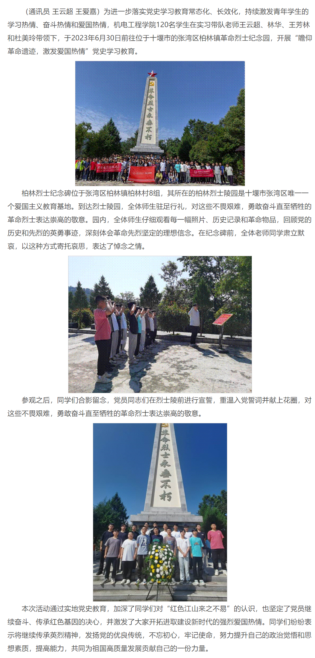 乐天使赴十堰生产实习师生开展“实习不忘革命先烈,陵园重温入党誓词”党史学习教育