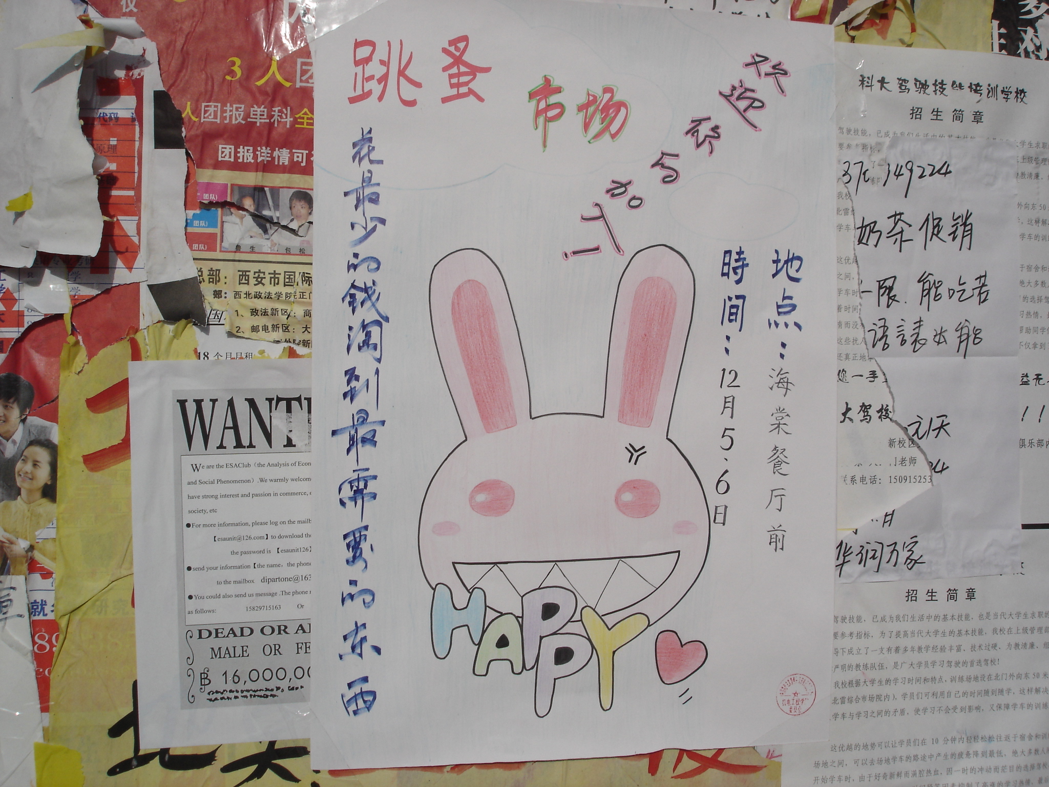 在12月5号和6号的“跳蚤”市场如期举行,在5号的开始阶段大家纷纷摆出摊位,展示自己需要交换的物品。经过一段时间后,越来越多的人知道此次活动,路过的同学对这个活动充满了好奇和热情,有很多同学积极要求摆摊、交换、购买,活动现场挤满了各个年级的同学们。特别是在5号和6号中午大家去海棠餐厅吃饭的时候,由于活动是在海棠餐厅附近,每个摊子前面都挤满了人,很多人都是十分满意的淘到自己喜爱的东西。