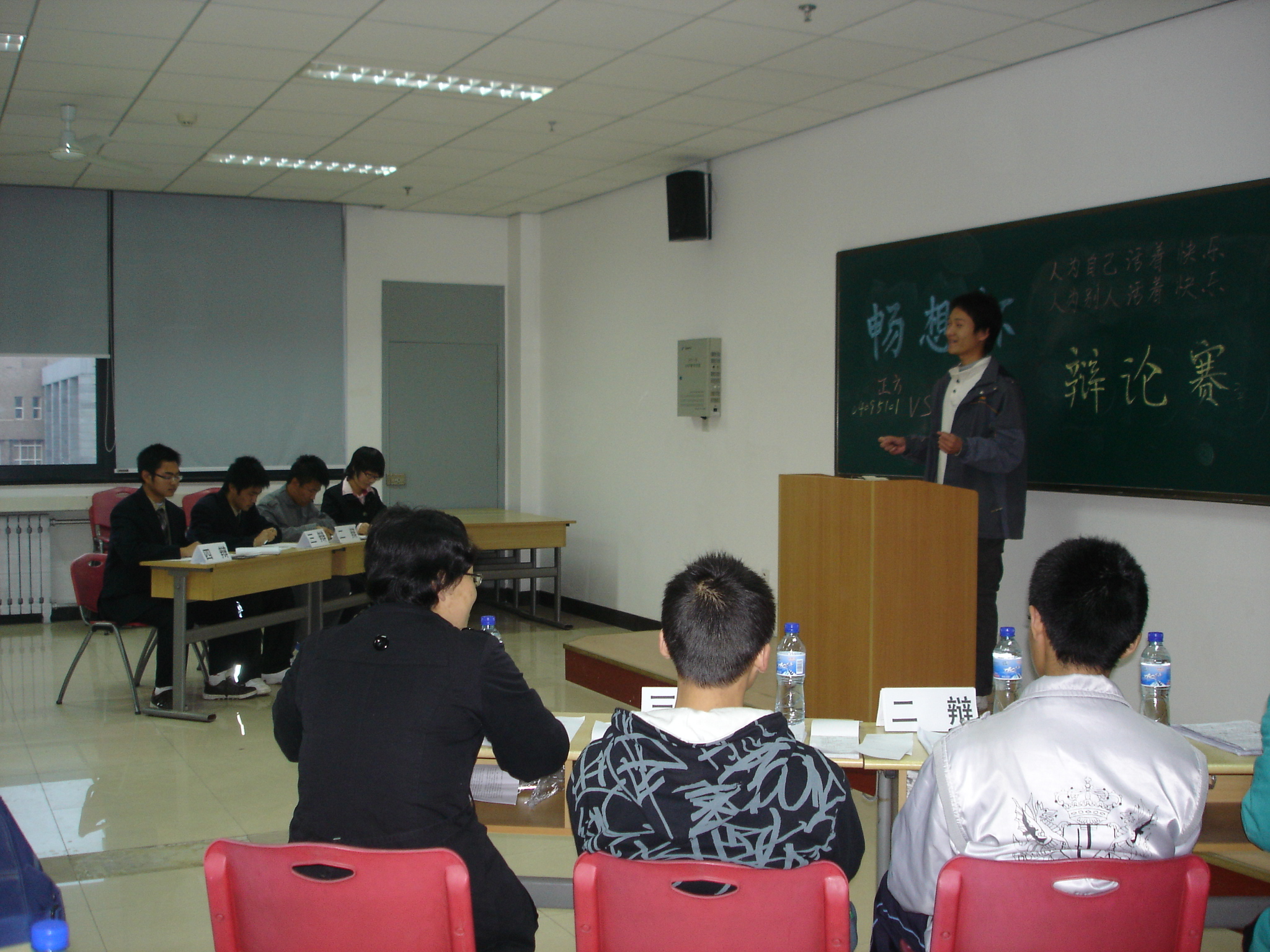 自辩论赛初赛开始,以各班为单位的辩论队围绕着各个论题尽情的展开了论战,无论是“老员工是否应该勤工俭学”还是“全才与专才哪个更适应社会”甚至是“成大事者应不应该拘小节”都引起正反双方的激烈辩论。