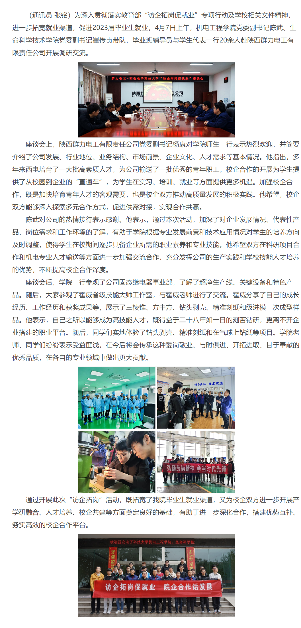 乐天使赴陕西群力电工有限责任公司开展访企拓岗专项行动