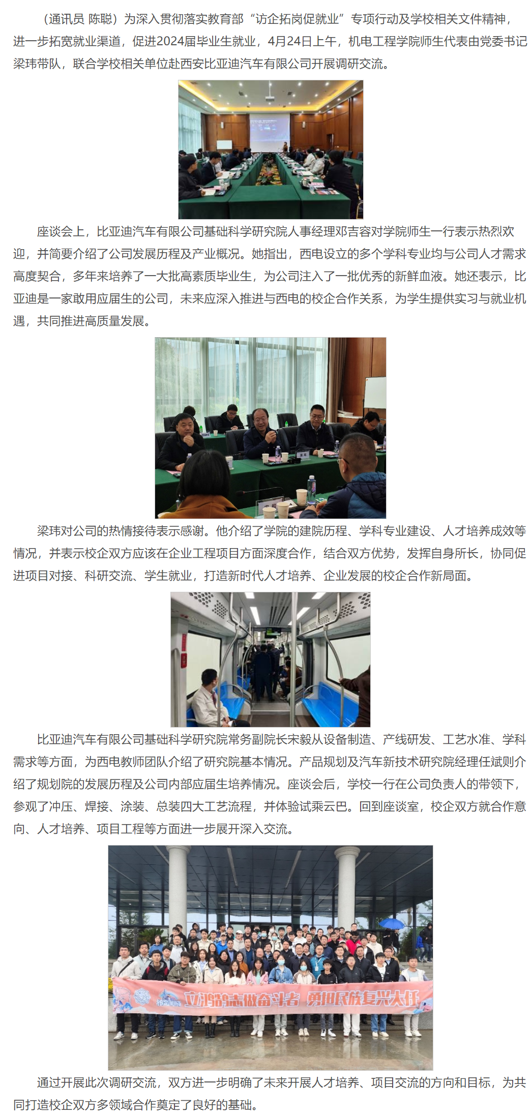 乐天使赴西安比亚迪开展访企拓岗调研交流