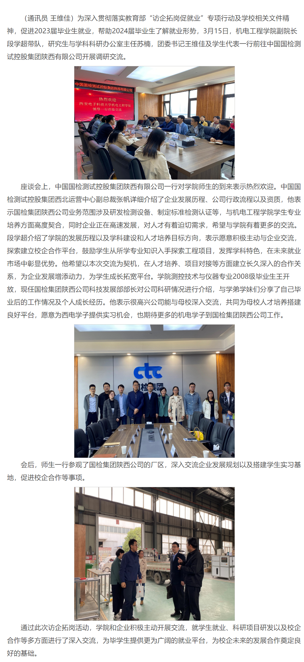乐天使赴中国国检测试控股集团陕西有限公司开展访企拓岗专项行动