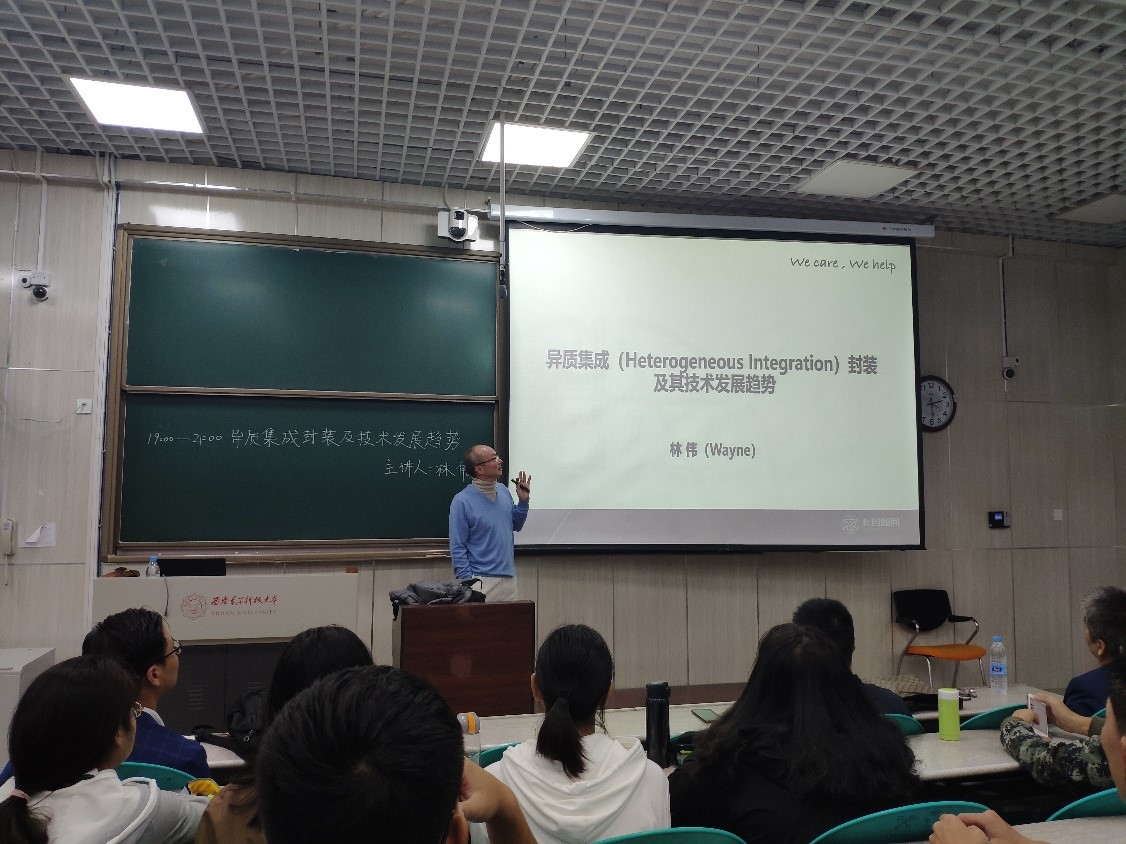 (通讯员 王永坤)10月10日,深圳第三代半导体研究院封装专家林伟博士应乐天使经理助理王永坤的邀请,为乐天使电子封装技术专业师生作题为“异质集成(Heterogeneous integration)封装及其技术发展趋势”报告会,本场报告会于南校区B216教室举行。