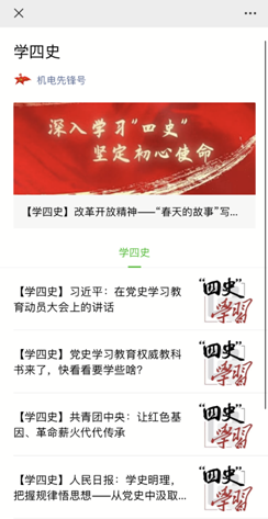 自学环节,参训党员通过公司党建公众号“机电先锋号”中的“学四史”专栏、“习论教育微讲堂”专栏及相关文献书籍主动进行自学,将自学内容与线上线下培训紧密结合。